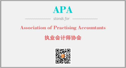 英文缩略词“APA”经常作为“Association of Practising Accountants”的英文缩写来使用,中文表示:“执业会计师协会”。本文将详细介绍英文缩写词APA所代表英文单词,其对应的中文拼音、详细解释以及在英语中的流行度。此外,还有关于缩略词APA的分类、应用领域及相关应用示例等。