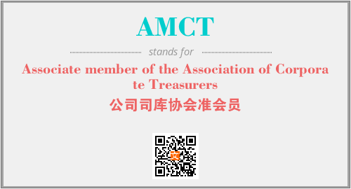 英文缩略词“AMCT”经常作为“Associate member of the Association of Corporate Treasurers”的英文缩写来使用,中文表示:“公司司库协会准会员”。本文将详细介绍英文缩写词AMCT所代表英文单词,其对应的中文拼音、详细解释以及在英语中的流行度。此外,还有关于缩略词AMCT的分类、应用领域及相关应用示例等。
