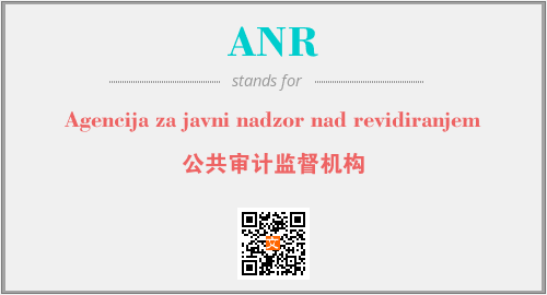 上述内容是“Agencija za javni nadzor nad revidiranjem”作为“ANR”的缩写,解释为“公共审计监督机构”时的信息,以及英文缩略词ANR所代表的英文单词,其对应的中文拼音、详细解释以及在英文中的流行度和相关分类、应用领域及应用示例等。