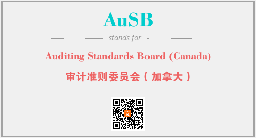 上述内容是“Auditing Standards Board (Canada)”作为“AuSB”的缩写,解释为“审计准则委员会(加拿大)”时的信息,以及英文缩略词AuSB所代表的英文单词,其对应的中文拼音、详细解释以及在英文中的流行度和相关分类、应用领域及应用示例等。