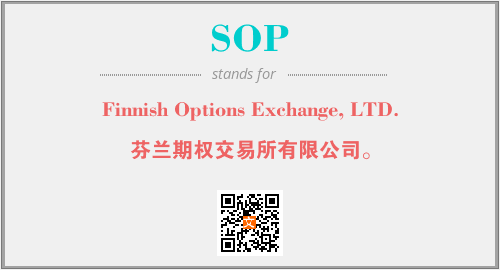 上述内容是“Finnish Options Exchange, LTD.”作为“SOP”的缩写,解释为“芬兰期权交易所有限公司。”时的信息,以及英文缩略词SOP所代表的英文单词,其对应的中文拼音、详细解释以及在英文中的流行度和相关分类、应用领域及应用示例等。