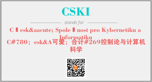 上述内容是“Česká Společnost pro Kybernetiku a Informatiku”作为“CSKI”的缩写,解释为“C#780;esk&A可爱;合计#269控制论与计算机科学”时的信息,以及英文缩略词CSKI所代表的英文单词,其对应的中文拼音、详细解释以及在英文中的流行度和相关分类、应用领域及应用示例等。