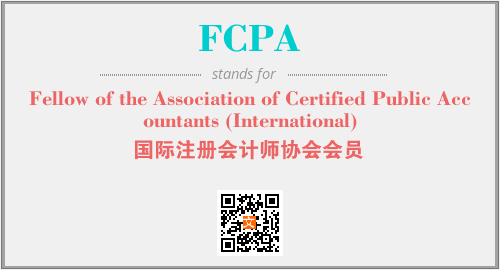 以上为Fellow of the Association of Certified Public Accountants (International)英文缩略词FCPA的中文解释,以及该英文缩写在英语的流行度、分类和应用领域方面的信息。