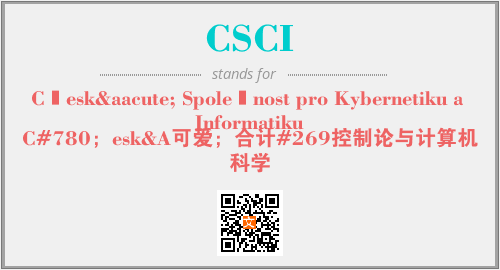 上述内容是“Česká Společnost pro Kybernetiku a Informatiku”作为“CSCI”的缩写,解释为“C#780;esk&A可爱;合计#269控制论与计算机科学”时的信息,以及英文缩略词CSCI所代表的英文单词,其对应的中文拼音、详细解释以及在英文中的流行度和相关分类、应用领域及应用示例等。