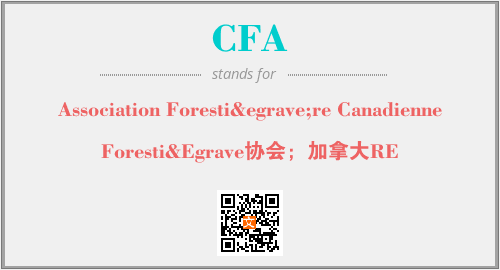 上述内容是“Association Forestière Canadienne”作为“CFA”的缩写,解释为“ForestiÈ协会;加拿大RE”时的信息,以及英文缩略词CFA所代表的英文单词,其对应的中文拼音、详细解释以及在英文中的流行度和相关分类、应用领域及应用示例等。