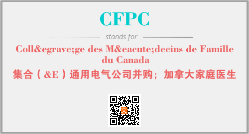 上述内容是“Collège des Médecins de Famille du Canada”作为“CFPC”的缩写,解释为“集合(&E)通用电气公司并购;加拿大家庭医生”时的信息,以及英文缩略词CFPC所代表的英文单词,其对应的中文拼音、详细解释以及在英文中的流行度和相关分类、应用领域及应用示例等。