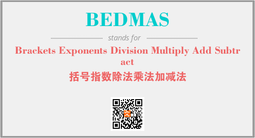 上述内容是“Brackets Exponents Division Multiply Add Subtract”作为“BEDMAS”的缩写,解释为“括号指数除法乘法加减法”时的信息,以及英文缩略词BEDMAS所代表的英文单词,其对应的中文拼音、详细解释以及在英文中的流行度和相关分类、应用领域及应用示例等。