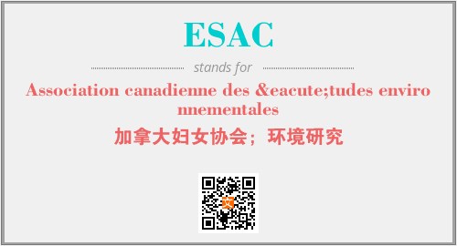 上述内容是“Association canadienne des études environnementales”作为“ESAC”的缩写,解释为“加拿大妇女协会;环境研究”时的信息,以及英文缩略词ESAC所代表的英文单词,其对应的中文拼音、详细解释以及在英文中的流行度和相关分类、应用领域及应用示例等。