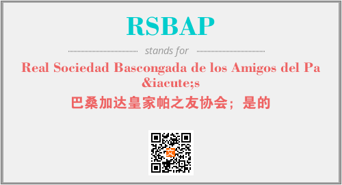上述内容是“Real Sociedad Bascongada de los Amigos del País”作为“RSBAP”的缩写,解释为“巴桑加达皇家帕之友协会;是的”时的信息,以及英文缩略词RSBAP所代表的英文单词,其对应的中文拼音、详细解释以及在英文中的流行度和相关分类、应用领域及应用示例等。