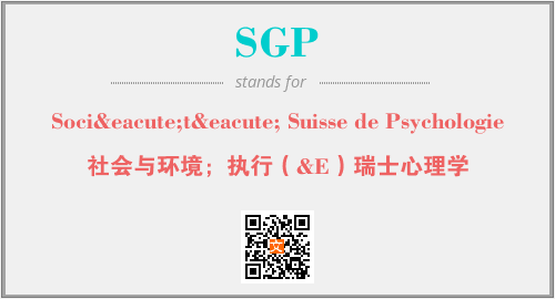 上述内容是“Société Suisse de Psychologie”作为“SGP”的缩写,解释为“社会与环境;执行(&E)瑞士心理学”时的信息,以及英文缩略词SGP所代表的英文单词,其对应的中文拼音、详细解释以及在英文中的流行度和相关分类、应用领域及应用示例等。