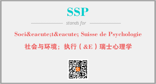 上述内容是“Société Suisse de Psychologie”作为“SSP”的缩写,解释为“社会与环境;执行(&E)瑞士心理学”时的信息,以及英文缩略词SSP所代表的英文单词,其对应的中文拼音、详细解释以及在英文中的流行度和相关分类、应用领域及应用示例等。