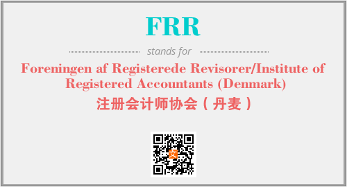 上述内容是“Foreningen af Registerede Revisorer/Institute of Registered Accountants (Denmark)”作为“FRR”的缩写,解释为“注册会计师协会(丹麦)”时的信息,以及英文缩略词FRR所代表的英文单词,其对应的中文拼音、详细解释以及在英文中的流行度和相关分类、应用领域及应用示例等。