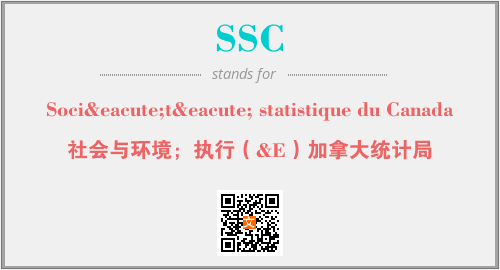 上述内容是“Société statistique du Canada”作为“SSC”的缩写,解释为“社会与环境;执行(&E)加拿大统计局”时的信息,以及英文缩略词SSC所代表的英文单词,其对应的中文拼音、详细解释以及在英文中的流行度和相关分类、应用领域及应用示例等。
