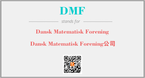 上述内容是“Dansk Matematisk Forening”作为“DMF”的缩写,解释为“Dansk Matematisk Forening公司”时的信息,以及英文缩略词DMF所代表的英文单词,其对应的中文拼音、详细解释以及在英文中的流行度和相关分类、应用领域及应用示例等。