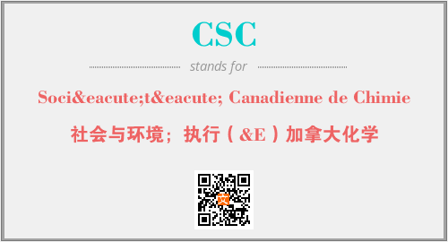 上述内容是“Société Canadienne de Chimie”作为“CSC”的缩写,解释为“社会与环境;执行(&E)加拿大化学”时的信息,以及英文缩略词CSC所代表的英文单词,其对应的中文拼音、详细解释以及在英文中的流行度和相关分类、应用领域及应用示例等。