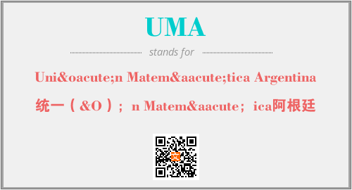 上述内容是“Unión Matemática Argentina”作为“UMA”的缩写,解释为“统一(&O);n Matemá;ica阿根廷”时的信息,以及英文缩略词UMA所代表的英文单词,其对应的中文拼音、详细解释以及在英文中的流行度和相关分类、应用领域及应用示例等。