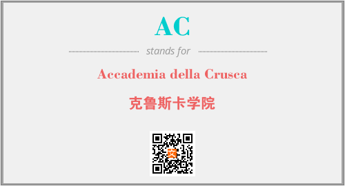 以上为Accademia della Crusca英文缩略词AC的中文解释,以及该英文缩写在英语的流行度、分类和应用领域方面的信息。