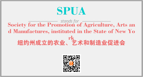 上述内容是“Society for the Promotion of Agriculture, Arts and Manufactures, instituted in the State of New York”作为“SPUA”的缩写,解释为“纽约州成立的农业、艺术和制造业促进会”时的信息,以及英文缩略词SPUA所代表的英文单词,其对应的中文拼音、详细解释以及在英文中的流行度和相关分类、应用领域及应用示例等。