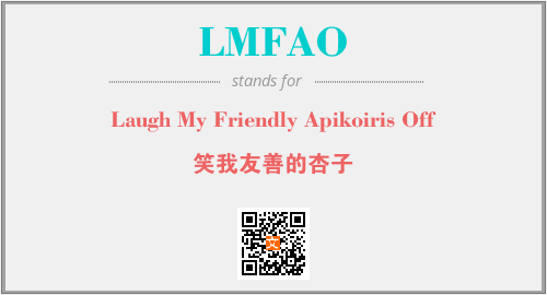 英文缩略词“LMFAO”经常作为“Laugh My Friendly Apikoiris Off”的英文缩写来使用,中文表示:“笑我友善的杏子”。本文将详细介绍英文缩写词LMFAO所代表英文单词,其对应的中文拼音、详细解释以及在英语中的流行度。此外,还有关于缩略词LMFAO的分类、应用领域及相关应用示例等。