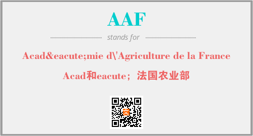 英文缩略词“AAF”经常作为“Académie d\'Agriculture de la France”的英文缩写来使用,中文表示:“Acad和eacute;法国农业部”。本文将详细介绍英文缩写词AAF所代表英文单词,其对应的中文拼音、详细解释以及在英语中的流行度。此外,还有关于缩略词AAF的分类、应用领域及相关应用示例等。