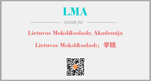 英文缩略词“LMA”经常作为“Lietuvos Mokslø Akademija”的英文缩写来使用,中文表示:“Lietuvos Mokslø;学院”。本文将详细介绍英文缩写词LMA所代表英文单词,其对应的中文拼音、详细解释以及在英语中的流行度。此外,还有关于缩略词LMA的分类、应用领域及相关应用示例等。
