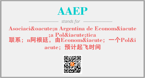 上述内容是“Asociación Argentina de Economía Política”作为“AAEP”的缩写,解释为“联系;n阿根廷,由Economí;一个Polí;预计起飞时间”时的信息,以及英文缩略词AAEP所代表的英文单词,其对应的中文拼音、详细解释以及在英文中的流行度和相关分类、应用领域及应用示例等。