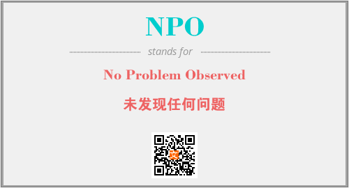 英文缩略词“NPO”经常作为“No Problem Observed”的英文缩写来使用,中文表示:“未发现任何问题”。本文将详细介绍英文缩写词NPO所代表英文单词,其对应的中文拼音、详细解释以及在英语中的流行度。此外,还有关于缩略词NPO的分类、应用领域及相关应用示例等。