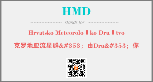上述内容是“Hrvatsko Meteorološko Društvo”作为“HMD”的缩写,解释为“克罗地亚流星群š;由Druš;你”时的信息,以及英文缩略词HMD所代表的英文单词,其对应的中文拼音、详细解释以及在英文中的流行度和相关分类、应用领域及应用示例等。