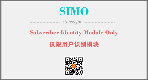 英文缩略词“SIMO”经常作为“Subscriber Identity Module Only”的英文缩写来使用,中文表示:“仅限用户识别模块”。本文将详细介绍英文缩写词SIMO所代表英文单词,其对应的中文拼音、详细解释以及在英语中的流行度。此外,还有关于缩略词SIMO的分类、应用领域及相关应用示例等。