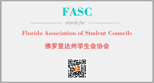 上述内容是“Florida Association of Student Councils”作为“FASC”的缩写,解释为“佛罗里达州学生会协会”时的信息,以及英文缩略词FASC所代表的英文单词,其对应的中文拼音、详细解释以及在英文中的流行度和相关分类、应用领域及应用示例等。
