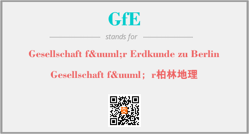 上述内容是“Gesellschaft für Erdkunde zu Berlin”作为“GfE”的缩写,解释为“Gesellschaft fü;r柏林地理”时的信息,以及英文缩略词GfE所代表的英文单词,其对应的中文拼音、详细解释以及在英文中的流行度和相关分类、应用领域及应用示例等。