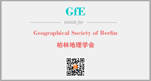 上述内容是“Geographical Society of Berlin”作为“GfE”的缩写,解释为“柏林地理学会”时的信息,以及英文缩略词GfE所代表的英文单词,其对应的中文拼音、详细解释以及在英文中的流行度和相关分类、应用领域及应用示例等。