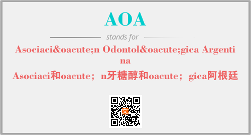 上述内容是“Asociación Odontológica Argentina”作为“AOA”的缩写,解释为“Asociaci和oacute;n牙糖醇和oacute;gica阿根廷”时的信息,以及英文缩略词AOA所代表的英文单词,其对应的中文拼音、详细解释以及在英文中的流行度和相关分类、应用领域及应用示例等。