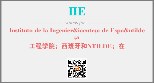 英文缩略词“IIE”经常作为“Instituto de la Ingeniería de España”的英文缩写来使用,中文表示:“工程学院;西班牙和NTILDE;在”。本文将详细介绍英文缩写词IIE所代表英文单词,其对应的中文拼音、详细解释以及在英语中的流行度。此外,还有关于缩略词IIE的分类、应用领域及相关应用示例等。