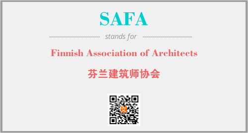 英文缩略词“SAFA”经常作为“Finnish Association of Architects”的英文缩写来使用,中文表示:“芬兰建筑师协会”。本文将详细介绍英文缩写词SAFA所代表英文单词,其对应的中文拼音、详细解释以及在英语中的流行度。此外,还有关于缩略词SAFA的分类、应用领域及相关应用示例等。