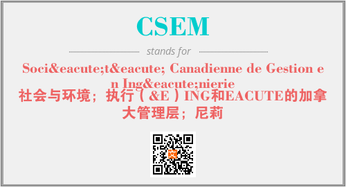 上述内容是“Société Canadienne de Gestion en Ingénierie”作为“CSEM”的缩写,解释为“社会与环境;执行(&E)ING和EACUTE的加拿大管理层;尼莉”时的信息,以及英文缩略词CSEM所代表的英文单词,其对应的中文拼音、详细解释以及在英文中的流行度和相关分类、应用领域及应用示例等。