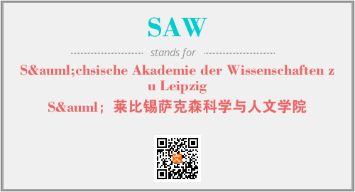 上述内容是“Sächsische Akademie der Wissenschaften zu Leipzig”作为“SAW”的缩写,解释为“Sä;莱比锡萨克森科学与人文学院”时的信息,以及英文缩略词SAW所代表的英文单词,其对应的中文拼音、详细解释以及在英文中的流行度和相关分类、应用领域及应用示例等。