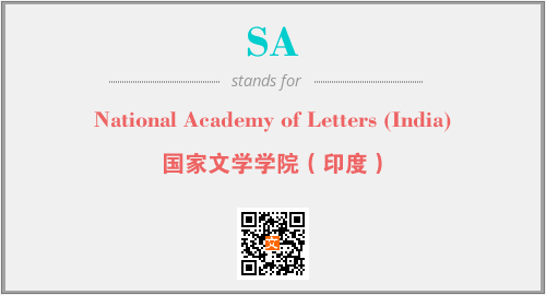 上述内容是“National Academy of Letters (India)”作为“SA”的缩写,解释为“国家文学学院(印度)”时的信息,以及英文缩略词SA所代表的英文单词,其对应的中文拼音、详细解释以及在英文中的流行度和相关分类、应用领域及应用示例等。
