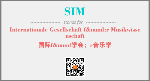 英文缩略词“SIM”经常作为“Internationale Gesellschaft für Musikwissenschaft”的英文缩写来使用,中文表示:“国际fü学会;r音乐学”。本文将详细介绍英文缩写词SIM所代表英文单词,其对应的中文拼音、详细解释以及在英语中的流行度。此外,还有关于缩略词SIM的分类、应用领域及相关应用示例等。