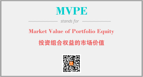 上述内容是“Market Value of Portfolio Equity”作为“MVPE”的缩写,解释为“投资组合权益的市场价值”时的信息,以及英文缩略词MVPE所代表的英文单词,其对应的中文拼音、详细解释以及在英文中的流行度和相关分类、应用领域及应用示例等。