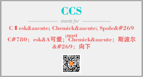 上述内容是“Česká Chemická Společnost”作为“CCS”的缩写,解释为“C#780;esk&A可爱;Chemická;斯波尔č;向下”时的信息,以及英文缩略词CCS所代表的英文单词,其对应的中文拼音、详细解释以及在英文中的流行度和相关分类、应用领域及应用示例等。