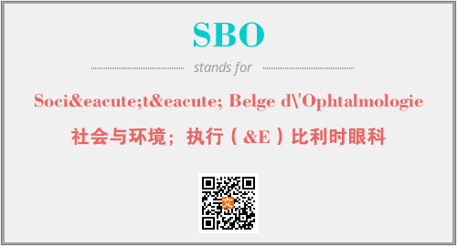 上述内容是“Société Belge d\'Ophtalmologie”作为“SBO”的缩写,解释为“社会与环境;执行(&E)比利时眼科”时的信息,以及英文缩略词SBO所代表的英文单词,其对应的中文拼音、详细解释以及在英文中的流行度和相关分类、应用领域及应用示例等。