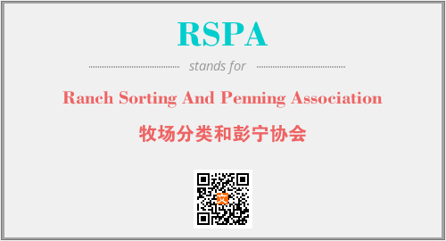 英文缩略词“RSPA”经常作为“Ranch Sorting And Penning Association”的英文缩写来使用,中文表示:“牧场分类和彭宁协会”。本文将详细介绍英文缩写词RSPA所代表英文单词,其对应的中文拼音、详细解释以及在英语中的流行度。此外,还有关于缩略词RSPA的分类、应用领域及相关应用示例等。