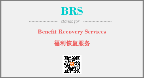 英文缩略词“BRS”经常作为“Benefit Recovery Services”的英文缩写来使用,中文表示:“福利恢复服务”。本文将详细介绍英文缩写词BRS所代表英文单词,其对应的中文拼音、详细解释以及在英语中的流行度。此外,还有关于缩略词BRS的分类、应用领域及相关应用示例等。