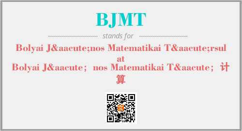 上述内容是“Bolyai János Matematikai Társulat”作为“BJMT”的缩写,解释为“Bolyai Já;nos Matematikai Tá;计算”时的信息,以及英文缩略词BJMT所代表的英文单词,其对应的中文拼音、详细解释以及在英文中的流行度和相关分类、应用领域及应用示例等。