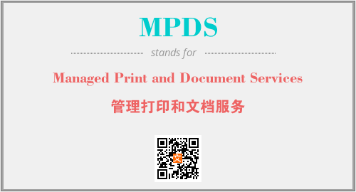 英文缩略词“MPDS”经常作为“Managed Print and Document Services”的英文缩写来使用,中文表示:“管理打印和文档服务”。本文将详细介绍英文缩写词MPDS所代表英文单词,其对应的中文拼音、详细解释以及在英语中的流行度。此外,还有关于缩略词MPDS的分类、应用领域及相关应用示例等。