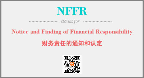 以上为Notice and Finding of Financial Responsibility英文缩略词NFFR的中文解释,以及该英文缩写在英语的流行度、分类和应用领域方面的信息。