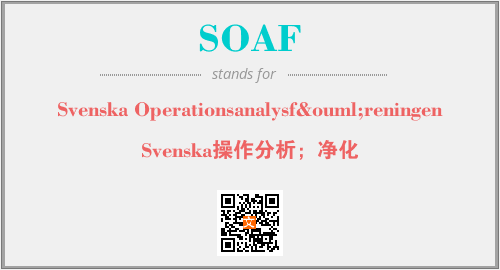 上述内容是“Svenska Operationsanalysföreningen”作为“SOAF”的缩写,解释为“Svenska操作分析;净化”时的信息,以及英文缩略词SOAF所代表的英文单词,其对应的中文拼音、详细解释以及在英文中的流行度和相关分类、应用领域及应用示例等。