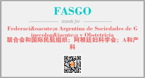 上述内容是“Federación Argentina de Sociedades de Ginecología y Obstetricia”作为“FASGO”的缩写,解释为“联合会和国际民航组织;阿根廷妇科学会;A和产科”时的信息,以及英文缩略词FASGO所代表的英文单词,其对应的中文拼音、详细解释以及在英文中的流行度和相关分类、应用领域及应用示例等。