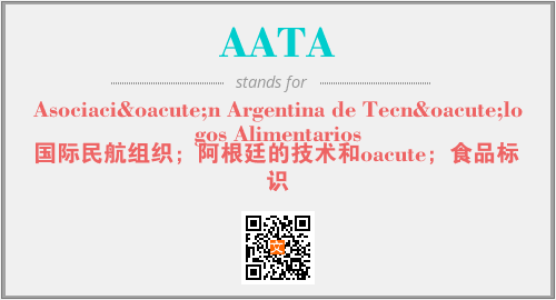上述内容是“Asociación Argentina de Tecnólogos Alimentarios”作为“AATA”的缩写,解释为“国际民航组织;阿根廷的技术和oacute;食品标识”时的信息,以及英文缩略词AATA所代表的英文单词,其对应的中文拼音、详细解释以及在英文中的流行度和相关分类、应用领域及应用示例等。